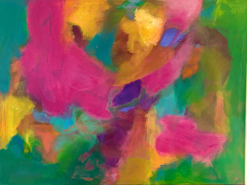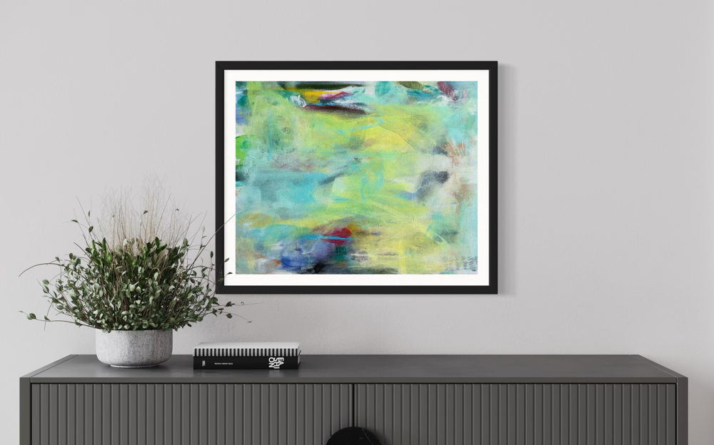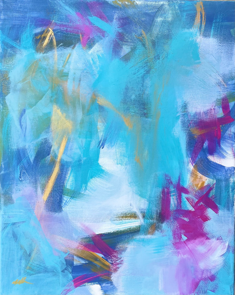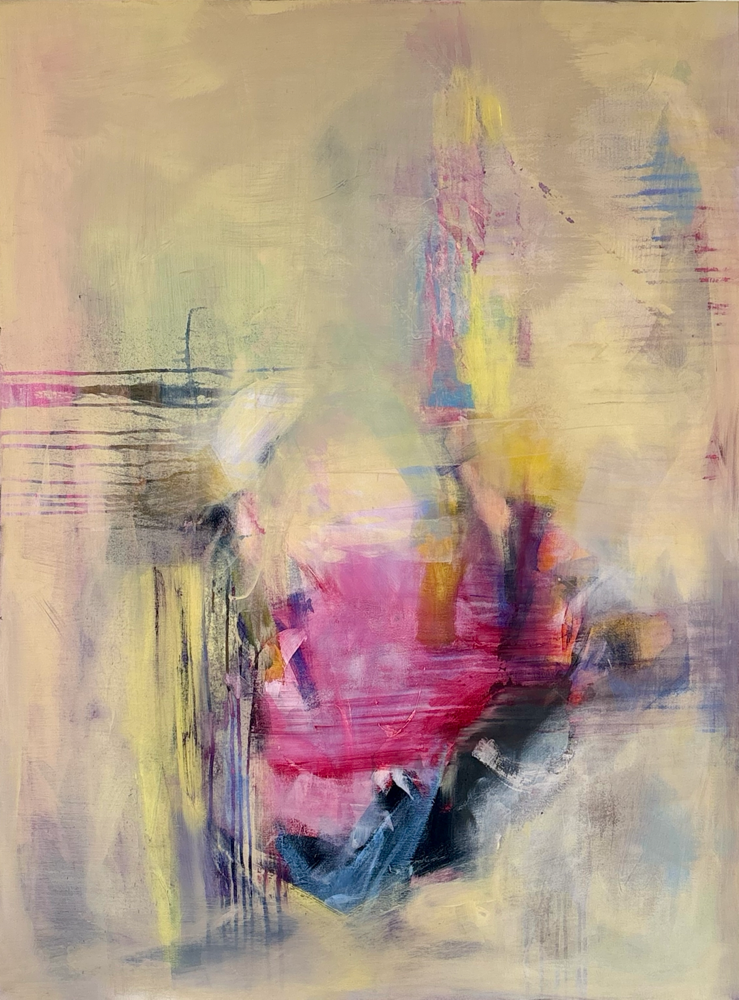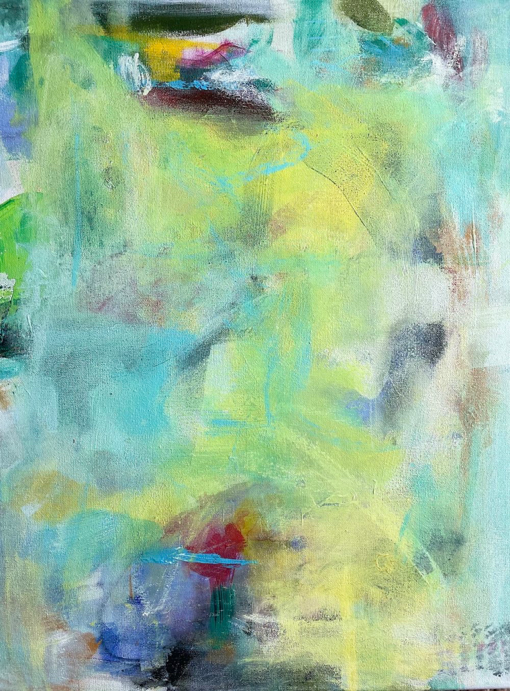 A wash of pastel colors creates a serene abstraction, reminiscent of gentle breezes and flowing waters.