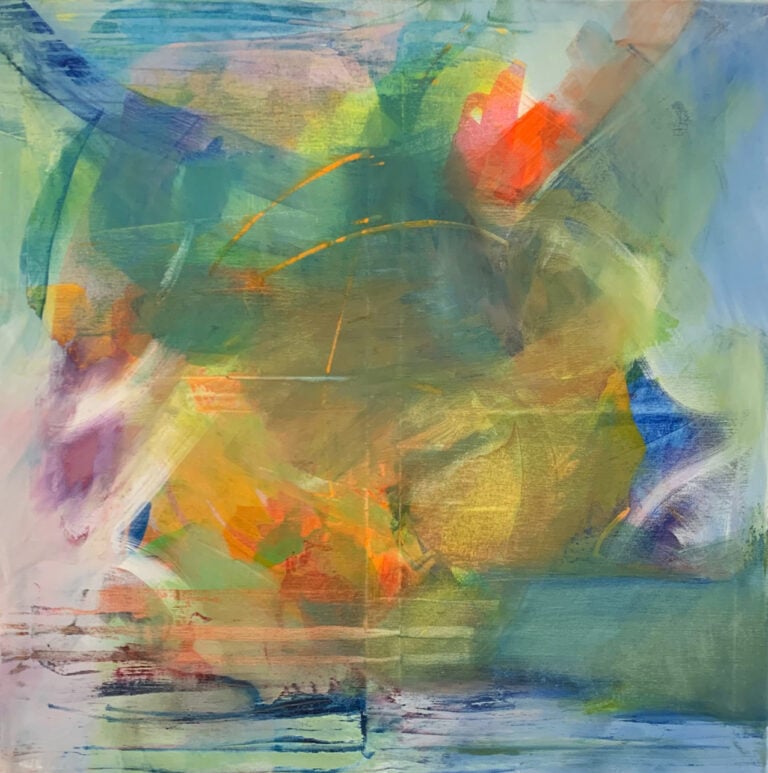 A compilation of abstract paintings on canvas.